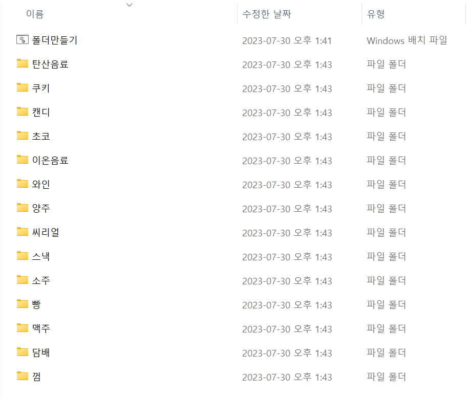 7. 폴더만들기 파일을 더블클릭해서 실행시키면 다음과 같이 폴더가 자동으로 생성되는 것을 볼 수 있습니다.