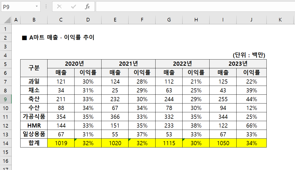 이렇게 엑셀을 하다보면 바탕에 셀별로 회색줄이 쳐져 있잖아요. 이 줄을 없애고 싶을 때가 있을 겁니다. 예를 들면 표를 캡처해서 누군가에게 보낸다던가 엑셀을 화면에 띄워서 발표를 한다던가 할 때 말이죠.